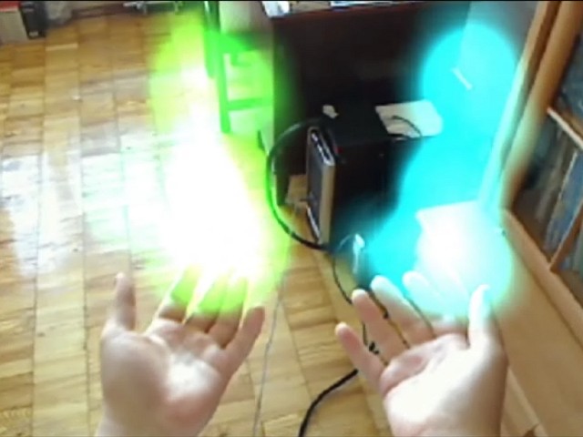 Several months ago I shipped off an MRG2.2 to Mnemonic in the Ukraine. He said he wanted to do a few mods and some experimenting. Little did I know that he would put together a totally sweet augmented reality system, where the view inside the VR helmet combined the real world outside the helmet with computer generated interactive 3D objects. Interaction comes through a gyroscopic head tracker AND a Microsoft Kinect. I’ll let the video and the photos explain further: